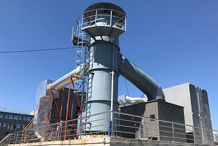 高溫脫附熱風在換熱器單元進行換熱,可用來預熱廢氣,節(jié)省能耗,降低運行成本。