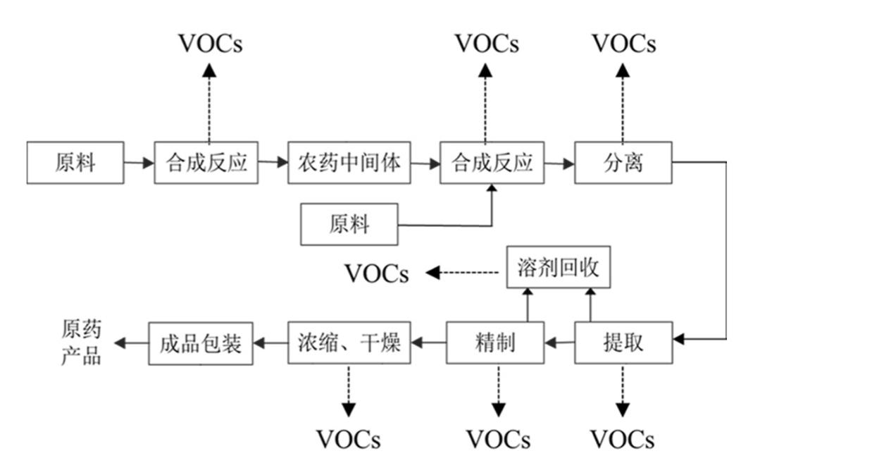 下圖是典型化學農藥制造工藝與VOCs 排放環(huán)節(jié)圖供參考