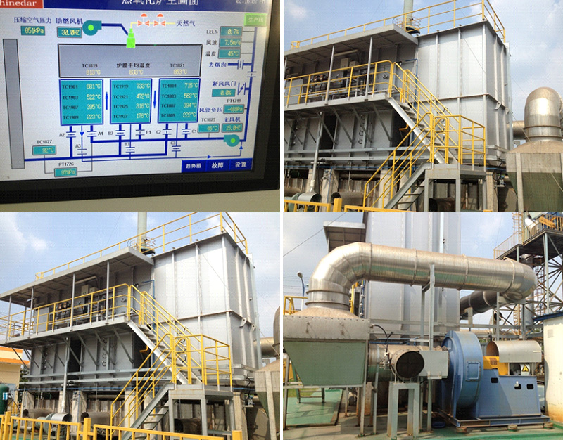 3) 廢氣凈化效率高(兩室95%以上,三室97%以上,旋轉(zhuǎn)RTO 98%以上);